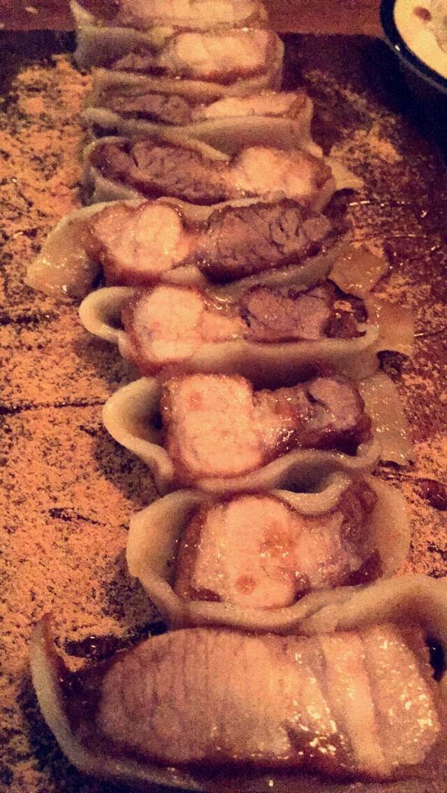 We ordered this porkbelly dish topped with 미숫가루 and wrapped in thick rice cake